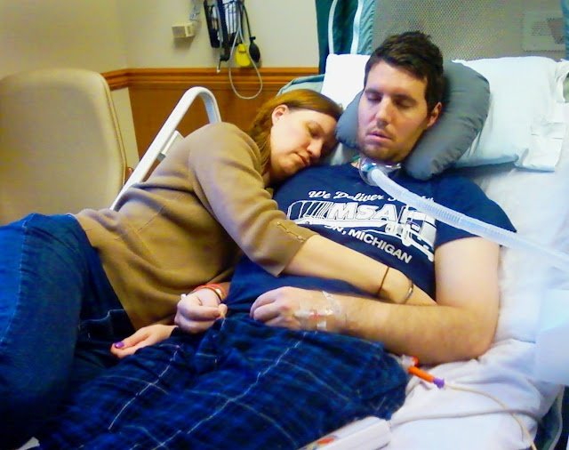 They are focused on getting his trach out. I have mixed feelings about that, but I suppose since he does have a strong cough, he'll be able to get rid of the crud still in his throat. (true love is suctioning cupfuls of snot out of your husband's neck-hole while chewing a mouthful of trailmix.) Anyway, so ... swallowing is still a high priority, for all of us. Today he coughed a bunch up into his mouth (and made a TERRIBLE face), which means he's pushing that hard, which is great. So I'm encouraged and I hope he is, too.